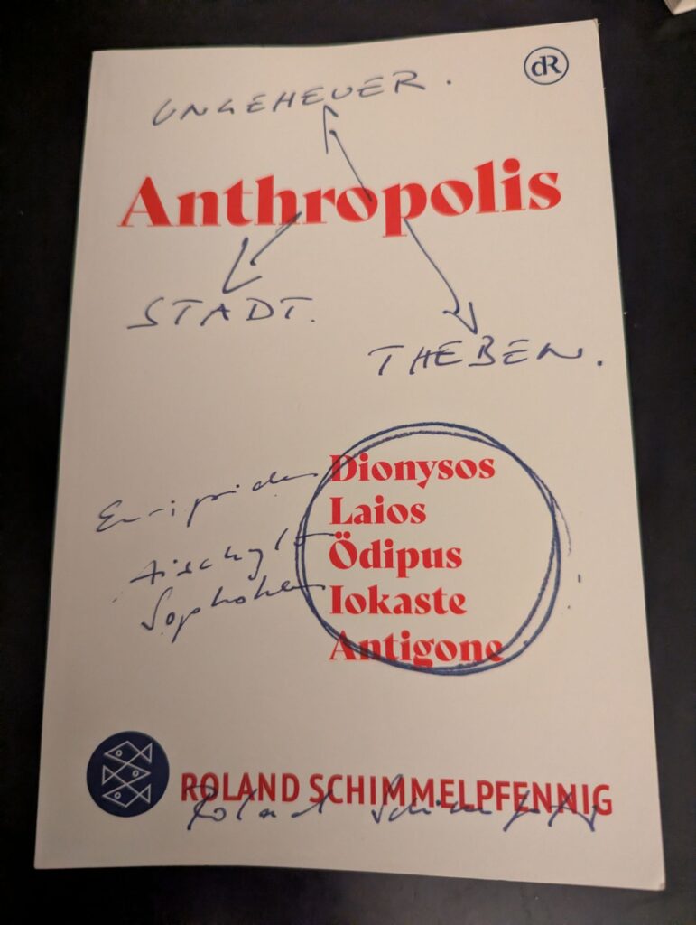 Eine Woche, bevor wir den fünf Aufführungen binnen drei Tagen am Deutschen Schauspielhaus Hamburg beiwohnen, habe ich mir die Stoffe zu Gemüte geführt. Der ANTHROPOLIS-Marathon wird sicher eben dies – ein Marathon, aber ich freue mich: griechische Dramen in Reinform.