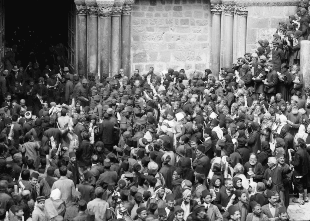 Titelbild: Crowds Awaiting the „Holy Fire“ at the Church of the Holy Sepulchre, American Colony, ca. 1910. Library of Congress bei Public Domain Image Archive.